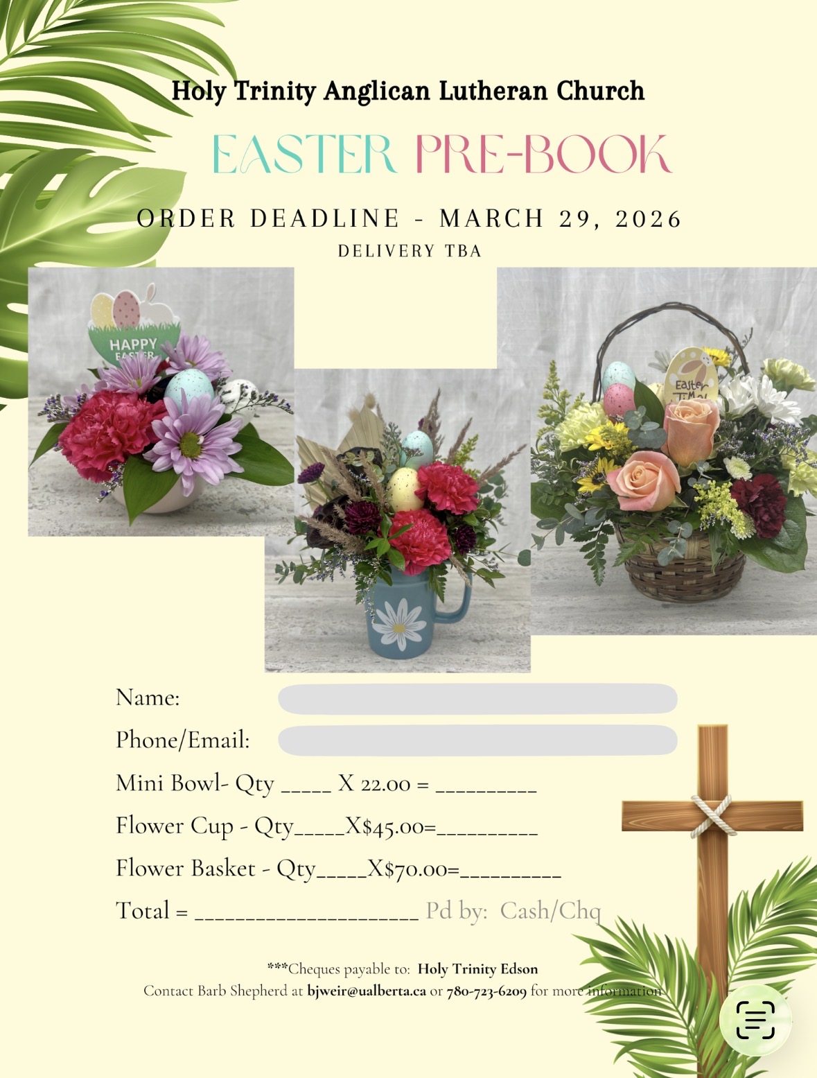 Holy Trinity Anglican Lutheran Church in Edson is holding an Easter floral fundraiser to support ecumenical ministry in Edson. Celebrate Easter with fresh arrangements from Staal Gardens! These Easter mini-arrangements are the perfect size to bring cheer to hospital rooms, seniors’ homes, and Easter tables. You can see pictures and prices HERE.